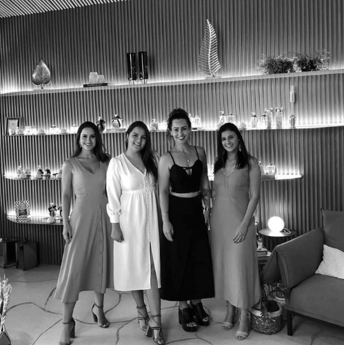 O universo das essências e texturas é evocado nestes 38 m2, deixando o espaço comercial com jeito de casa. A paleta de cores quentes domina o Lounge, assim como as linhas orgânicas. Elas se expressam principalmente no forro ondulado, com uma série de ripas em marcenaria. No piso e nas paredes, o porcelanato recortado manualmente em formas naturais ganha destaque, junto com a marcenaria. As rochas ornamentais do Estado também ganham uma citação, na utilização de mármore regional.